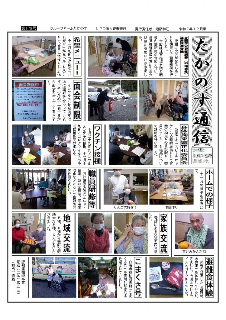 月ごとのイベントや、ホームの日々の様子は